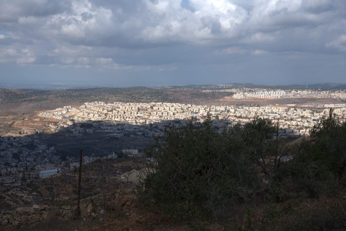 The view from the Nassar family’s farm, the Tent of Nations, near Bethlehem. The farm is the last remaining Palestinian property on a hilltop, and is now surrounded by settlements. The Nassar family have been locked in a legal battle over the ownership of their land in the Israeli courts for decades, despite having all of the paperwork that proves it is theirs. Photo: Charlotte Marshall.