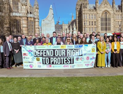 As a group of civil society organisations made up of trade unions, charities, NGOs, faith, climate justice, human rights, cultural, campaigning, and solidarity organisations, we believe that the right to protest is precious and should be defended. We therefore oppose the government’s draconian crackdown on our rights to freedom of expression and assembly. (more…)