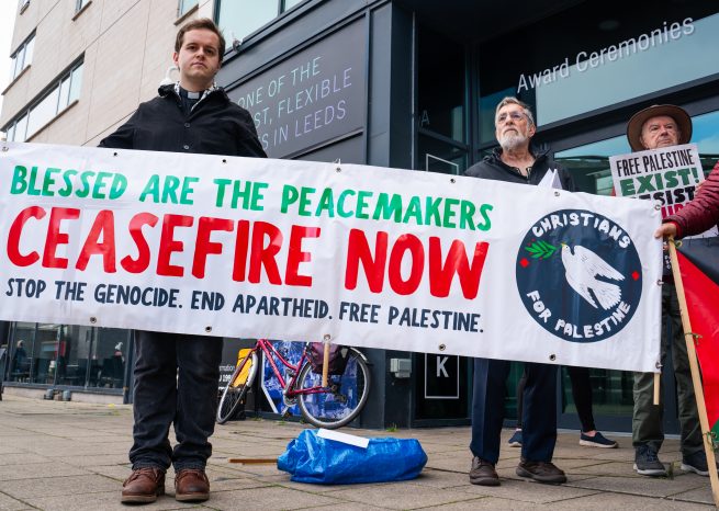 Christians for Palestine join Sabeel-Kairos UK in a vigil for Gaza outside the Methodist Conference in Leeds, 1st July 2024.