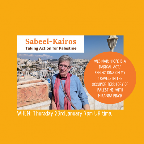 Sabeel-Kairos is the operating name of Friends of Sabeel UK (FOSUK) Ltd, Charity number 1116817, Company Number 5595112